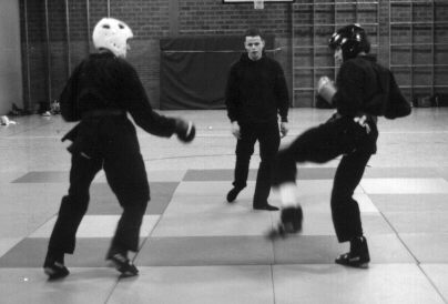 Der Theoretische teil des Lehrgangs wurde von Sven Sievers geleitet. Er erklärte den Kämpfern die Regeln für das diesjährige Kampfturnier. Dabei ging er noch einmal auf zulässige Trefferflächen, verbotene Aktionen und auch auf den Bewertungsmodus ein.