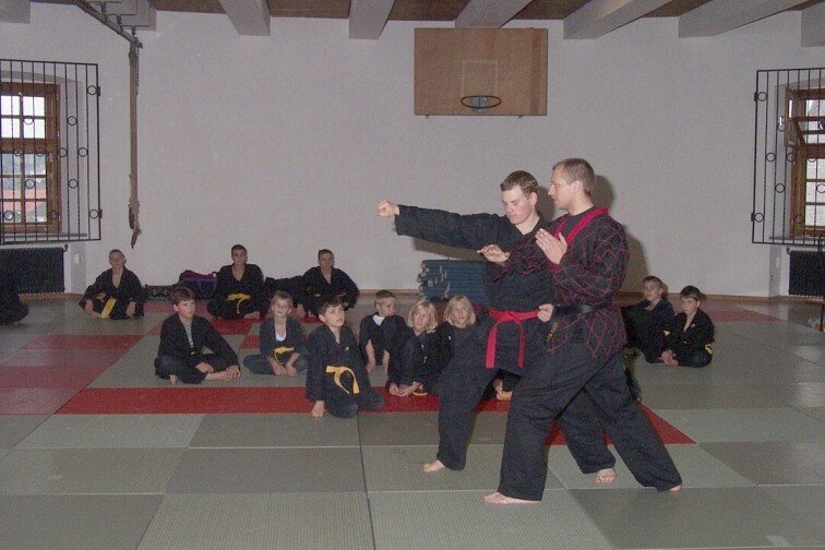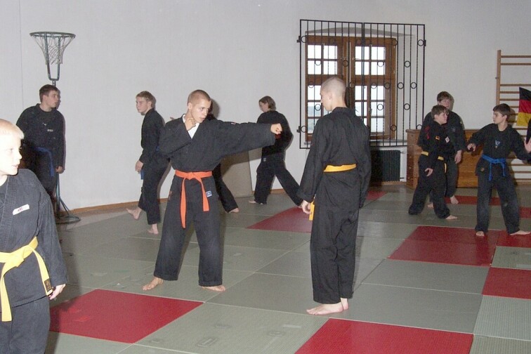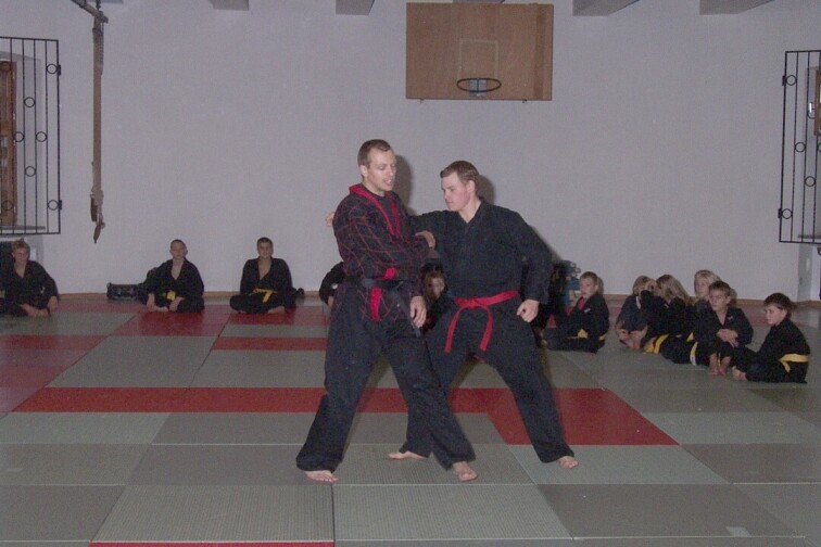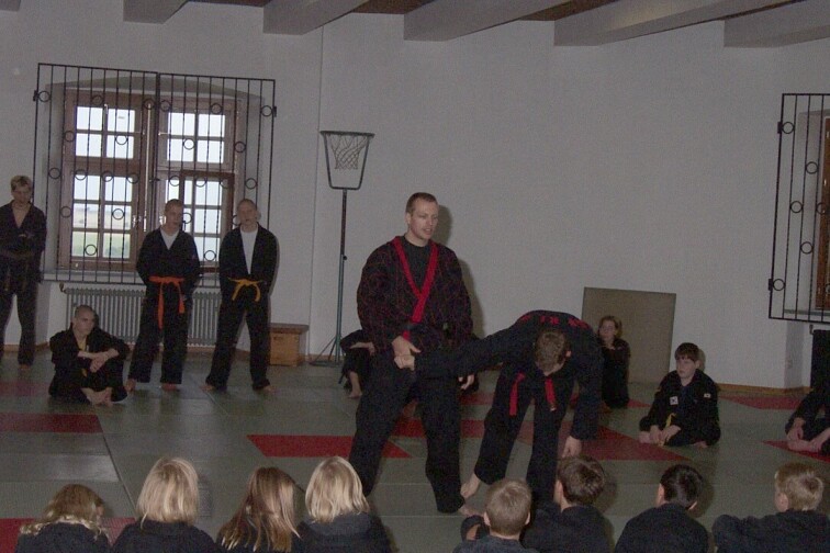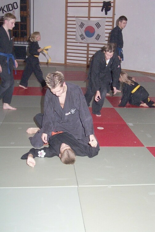 Nach relativ kurzer Nacht mit der einen oder anderen kleinen internen Party und ausgiebigem Frühstück versammelten wir uns alle zur nächsten Trainingseinheit bei Guido Böse und Tobias Lohre. Der Trainingsschwerpunkt lag diesmal bei der neuen Prüfungsordnung, dem eigentlichen Hauptthema des gesamten Wochenendes. Neben vielen neuen Techniken und ausgiebiger Grundschule lernten wir nach längerer Mittagspause noch effektive Pong-Techniken von Guido was zwar häufiger den einen oder anderen blauen Fleck ergab, doch auf jeden Fall lehrreich und interessant war.