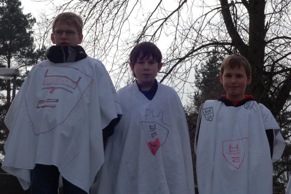 Wer fertig war, begab sich in den Gruppenraum des Hauses „Hanol“ (Himmel), um dort sein Rittergewand mit dem koreanischen Schriftzeichen für das Element seines Hauses zu versehen. So herrschte dort bis kurz vor Mitternacht buntes Treiben, ein reges Kommen und Gehen. Gerade die jüngeren Teilnehmer legten viel Wert auf eine kreative Gestaltung des Gewands, doch auch erstaunlich viele Erwachsene wollten sich in dieser Hinsicht nicht lumpen lassen. Also wurden solange Stifte und Ratschläge ausgetauscht, bis alle Gewänder jeden koreanischen Ritter vor Neid erblassen lassen würden.