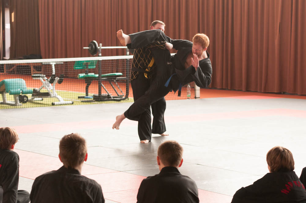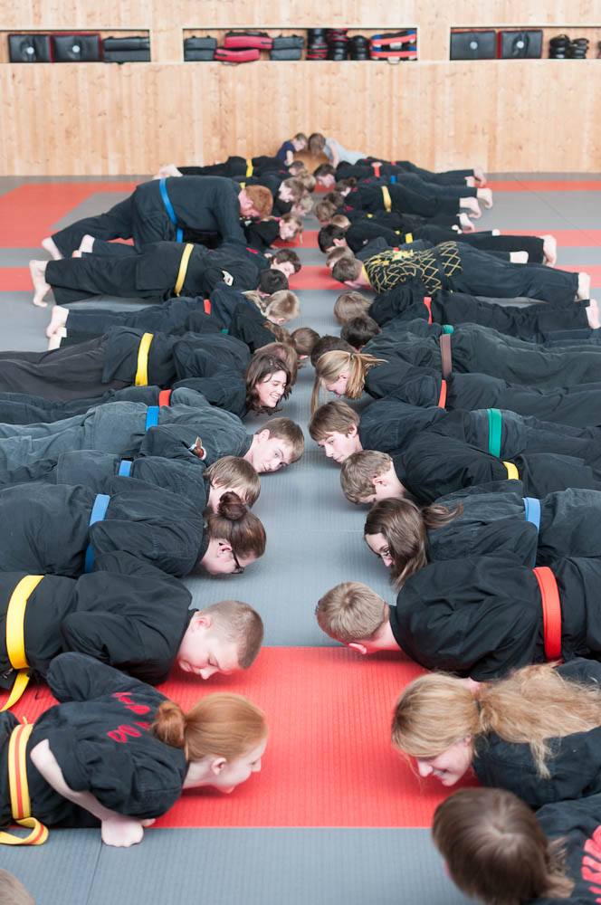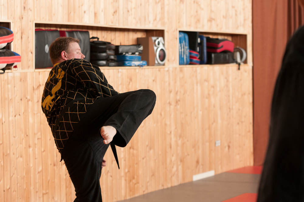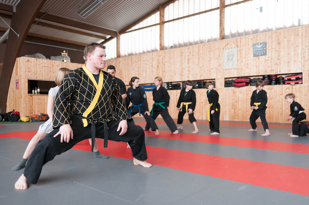 Manchmal kann ein Schritt in Richtung Angreifer auch die richtige Entscheidung sein. Nämlich dann, wenn man vor der maximalen Energieentfaltung des Angreifers diese gezielt aufnimmt, umleitet und aus dem Gleichgewicht bringt. Auch eine gewisse Schnelligkeit und Gelenkigkeit kann von Vorteil sein. Die ein oder andere Haarsträhne wehte von vorbeikickenden Füßen. Doch auch eine gut fokussierte offene Trefferfläche am Oberkörper, verbunden mit einer kontrollierten und sauberen Schlag- oder Fußtechnik kann Punkte bringen. Im Fokus dieses Lehrgangs lagen somit verschiedene Schwerpunkte, die sich jeder Teilnehmer individuell aneignen konnte. Mit zahlreichen Technikvariationen konnte der Referent die Teilnehmer auf die kommende Meisterschaft vorbereiten. Mit viel Engagement und Humor verstand es der Referent die Teilnehmer gezielt an ihre Grenzen zu bringen. Er nahm sich für jeden die nötige Zeit und achtete auf die richtige Durchführung der Techniken.