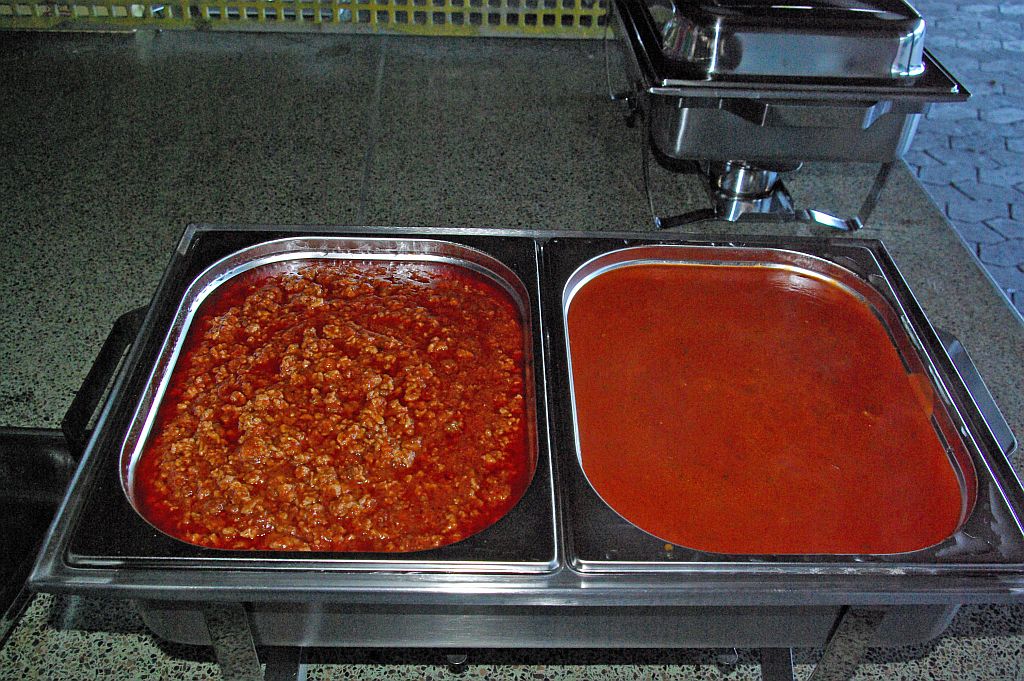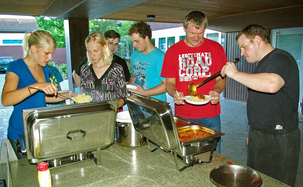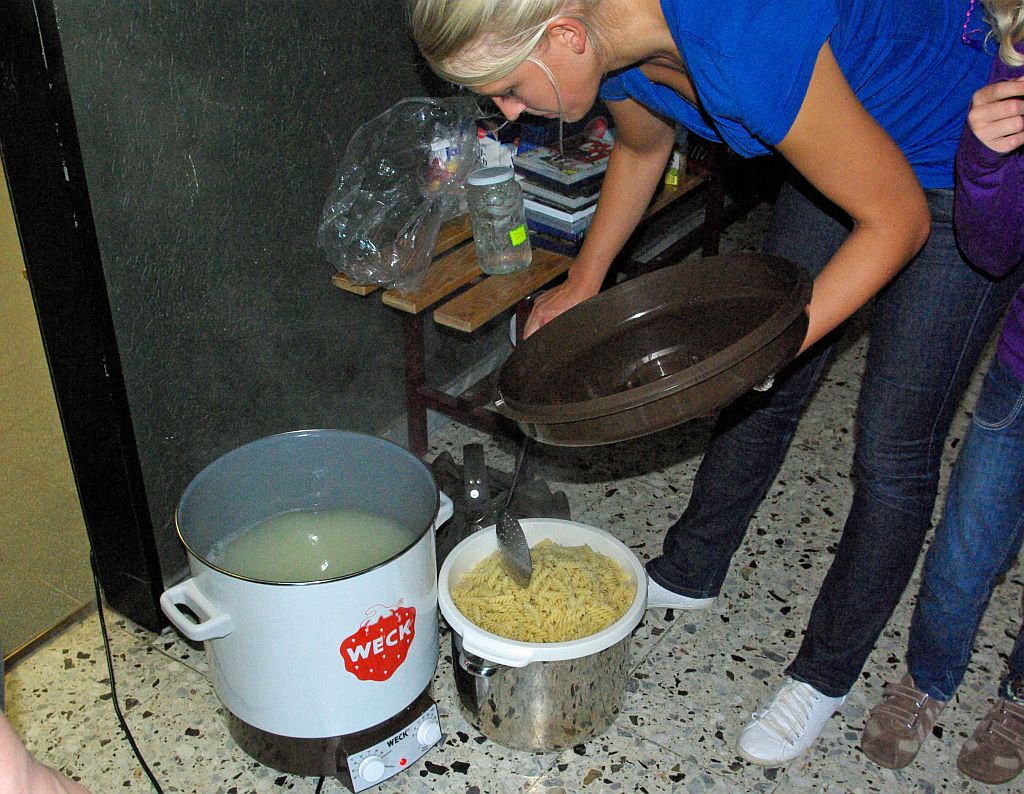 Für alle Aktiven, die bereits durch die lange Anfahrt und das vielfältige Programm am Samstagabend sichtlich erschöpft waren, hatten in der Zwischenzeit Sarah und Silke mit viel Liebe ein Abendessen vorbereitet. Große Töpfe voller Nudeln und kiloweise Bolognese-Sauce. Als besonderes Highlight ging es danach noch ins Plettenberger Erlebnisbad mit neuen Looping- und Freifallrutschen. Schon die Ankündigung mobilisierte bei allen neue Kräfte und alle Rutschen wurden dann gründlich erprobt, während einige Senioren sich im Solebad entspannten.