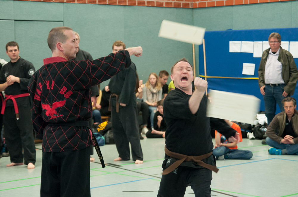 Der Nachmittag stand dann im Zeichen des Formenlaufes sowie des Bruchtestes. Die Zuschauer sahen auch hier in allen Kategorien ausgezeichnete Leistungen der Teilnehmer und spannende Entscheidungen. Bei den Senioren gingen hierbei alle Titel an die Budogemeinschaft Schwerte.