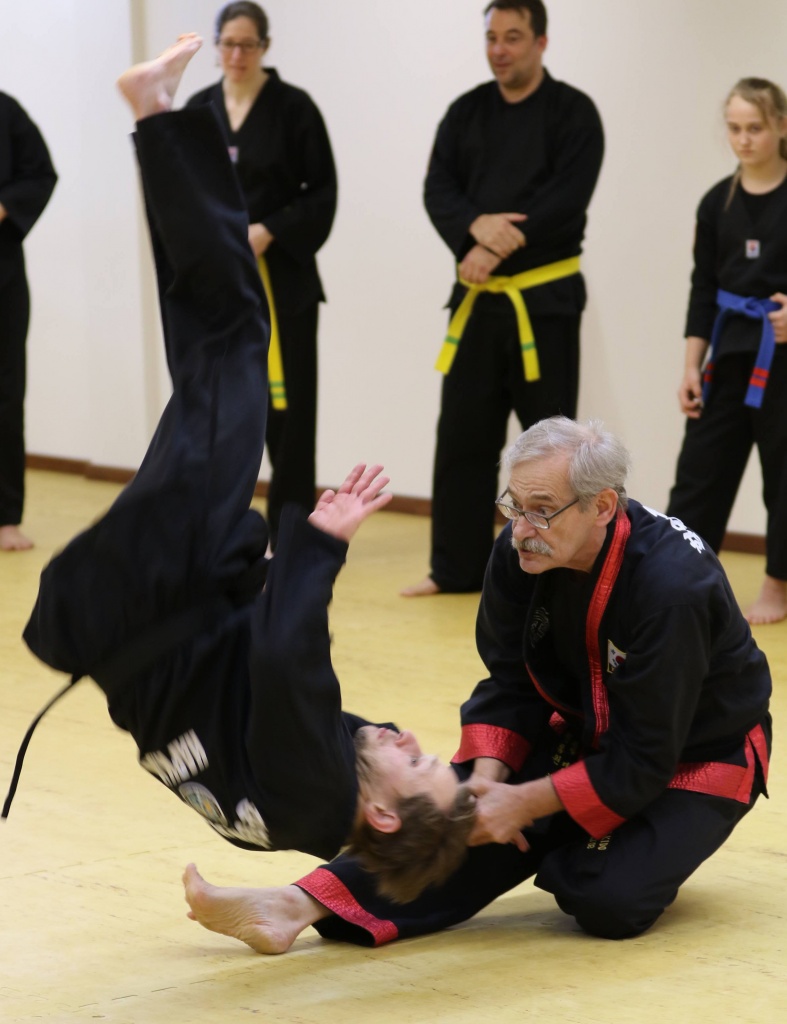 Raffinierte Schlagtechniken, schnelle und effektive Hebel, Grundlagen des Bodenkampfs, Atemtechniken zur Stärkung des inneren Ki - mehr als dreißig Schüler der Bundesakademie koreanischer Kampfkünste hatten am 10. März 2018 die Gelegenheit, unter Großmeister Detlef Klos, 9. Dan, und zwei seiner Meisterschüler, Marcus Frenkel und Katharina Niggemeier Einblicke in eine weitere Stilrichtung des Hapkido zu bekommen: das Hanminjok Hapkido.