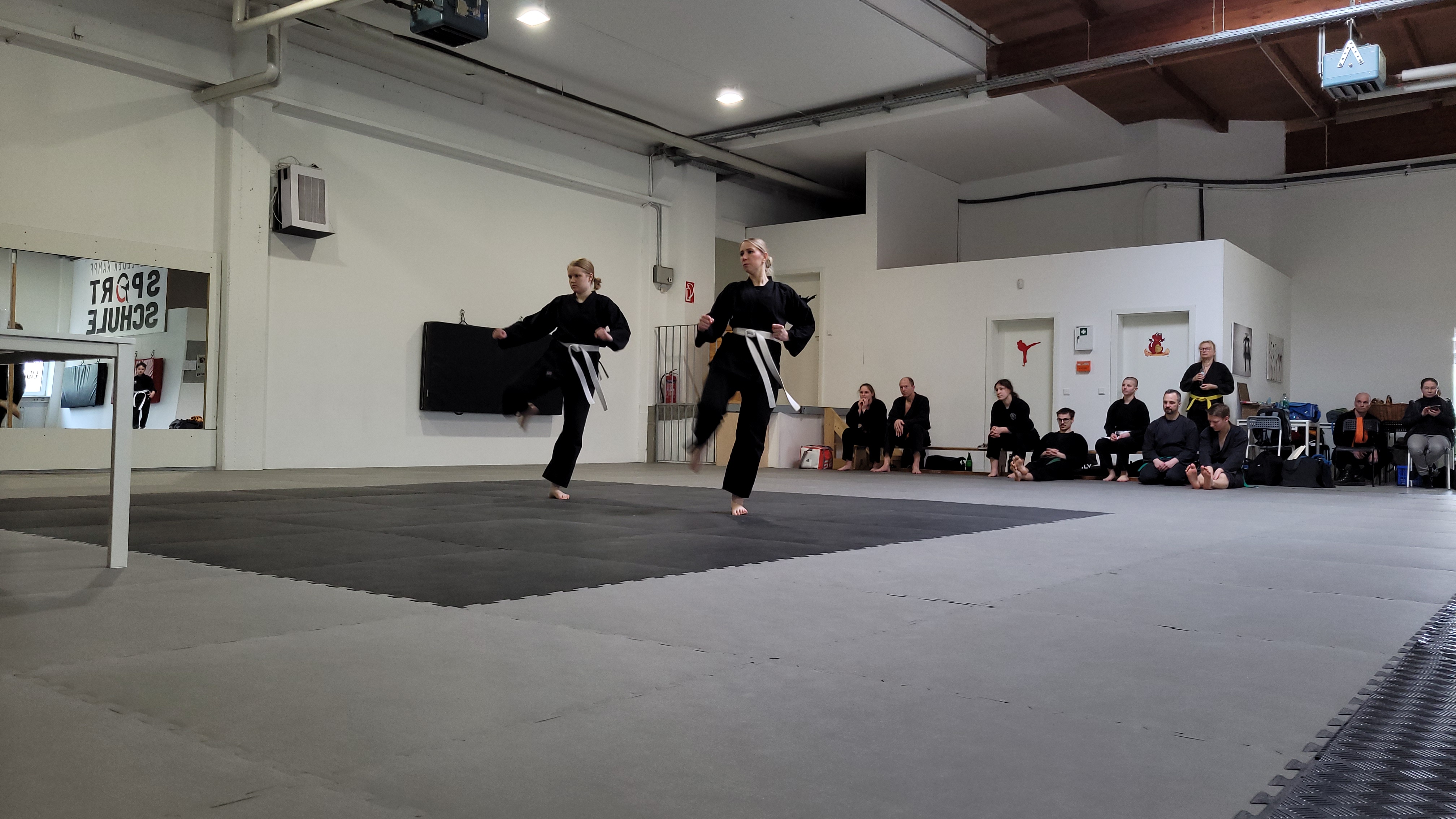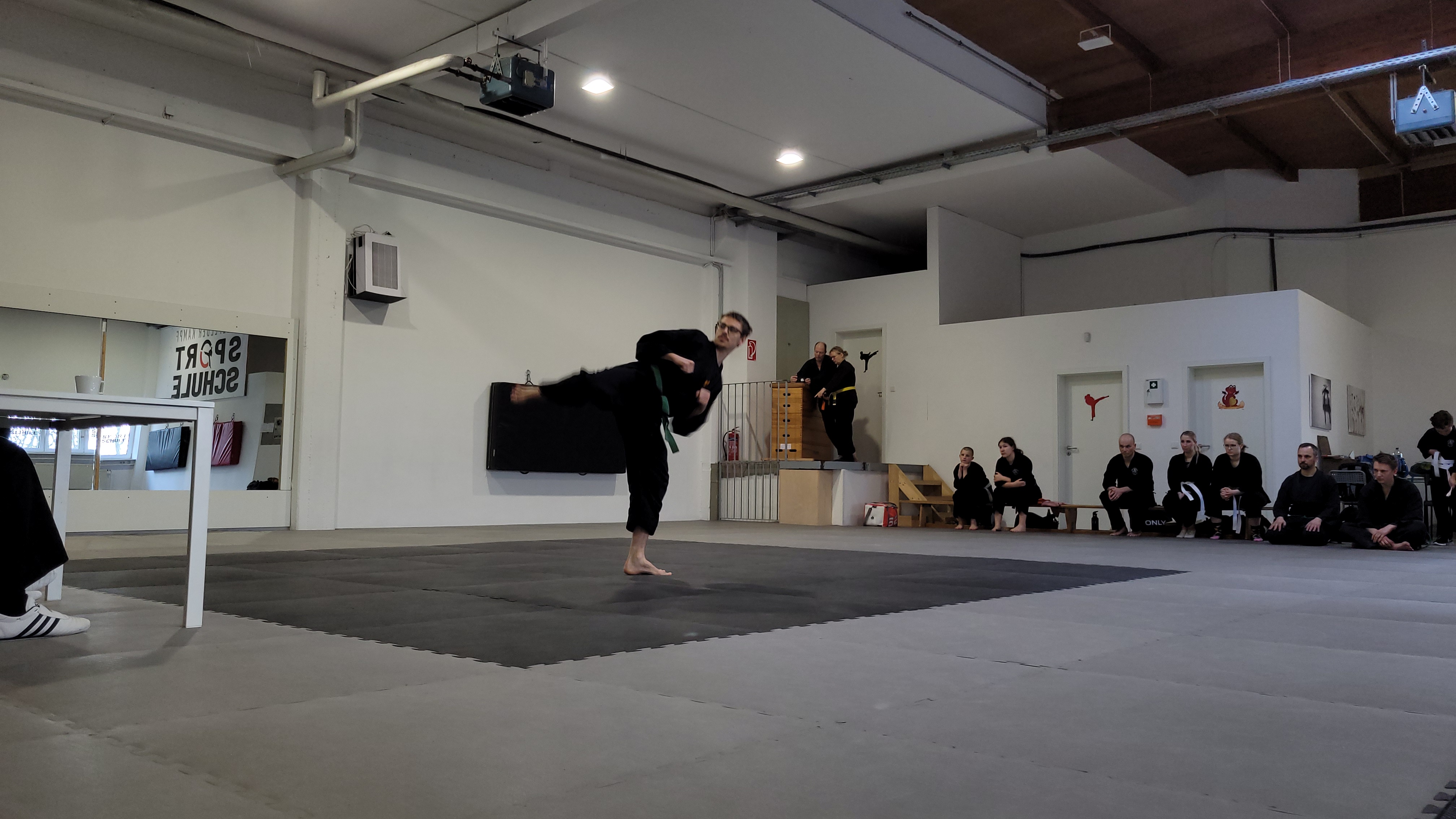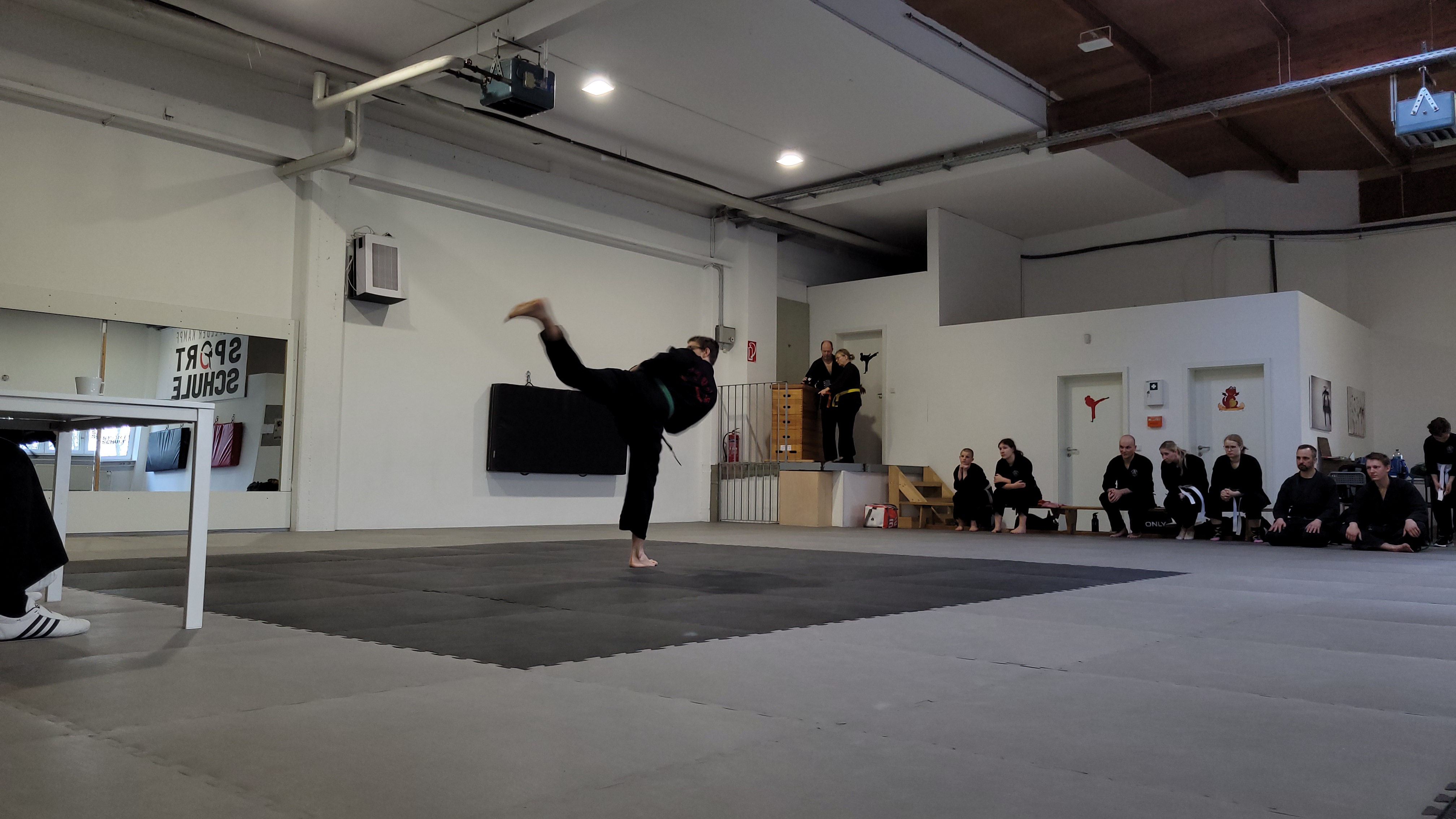 Die Prüflinge zeigten während der Prüfung beeindruckende Ausdauer und Präzision. Besonders hervorzuheben waren die Kämpfe und Bruchtests, die trotz der Länge der Prüfung souverän durchgeführt wurden. Dies unterstreicht das hohe Maß an Training und Vorbereitung, das die Prüflinge in ihre Prüfung investiert haben.