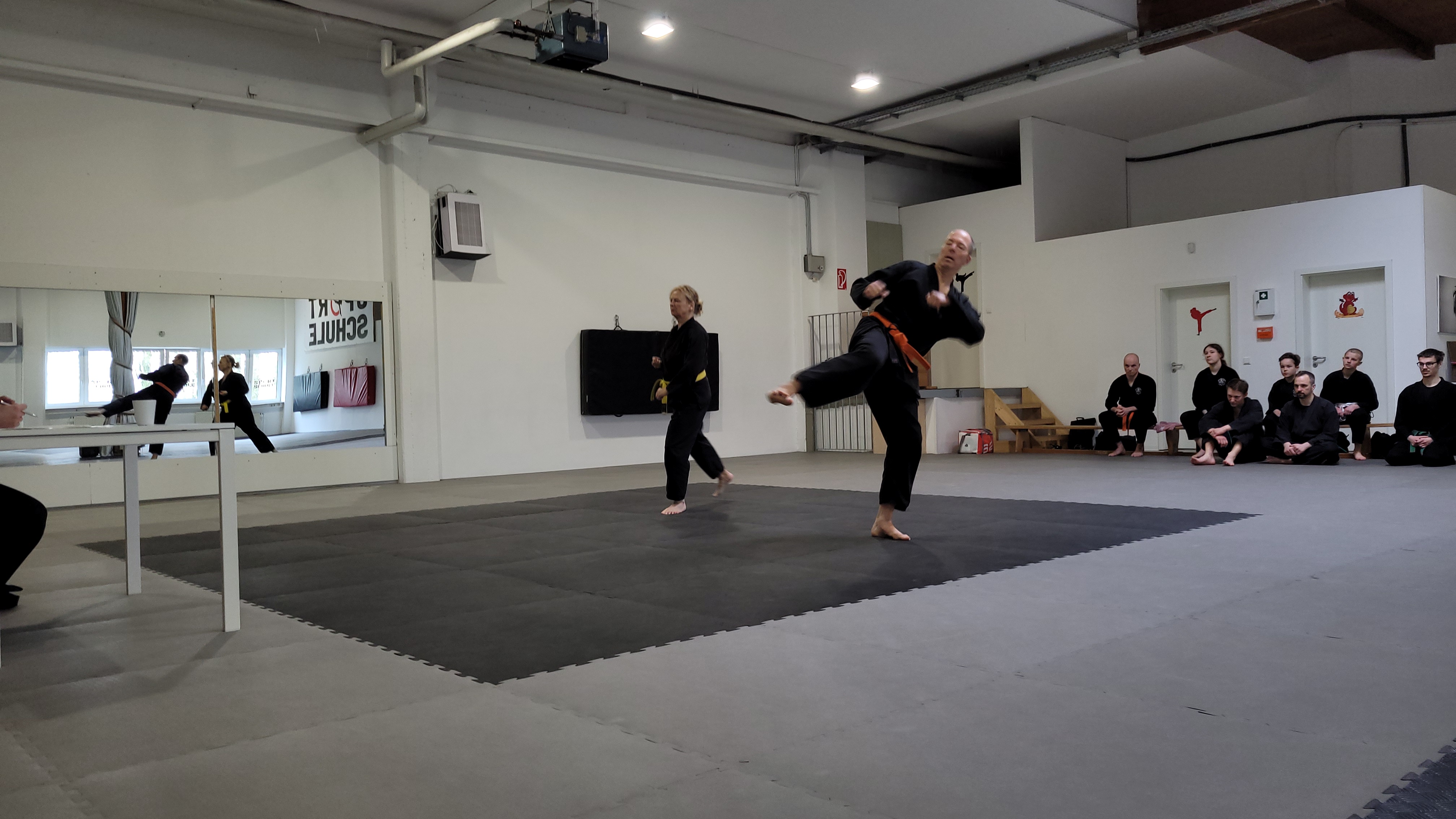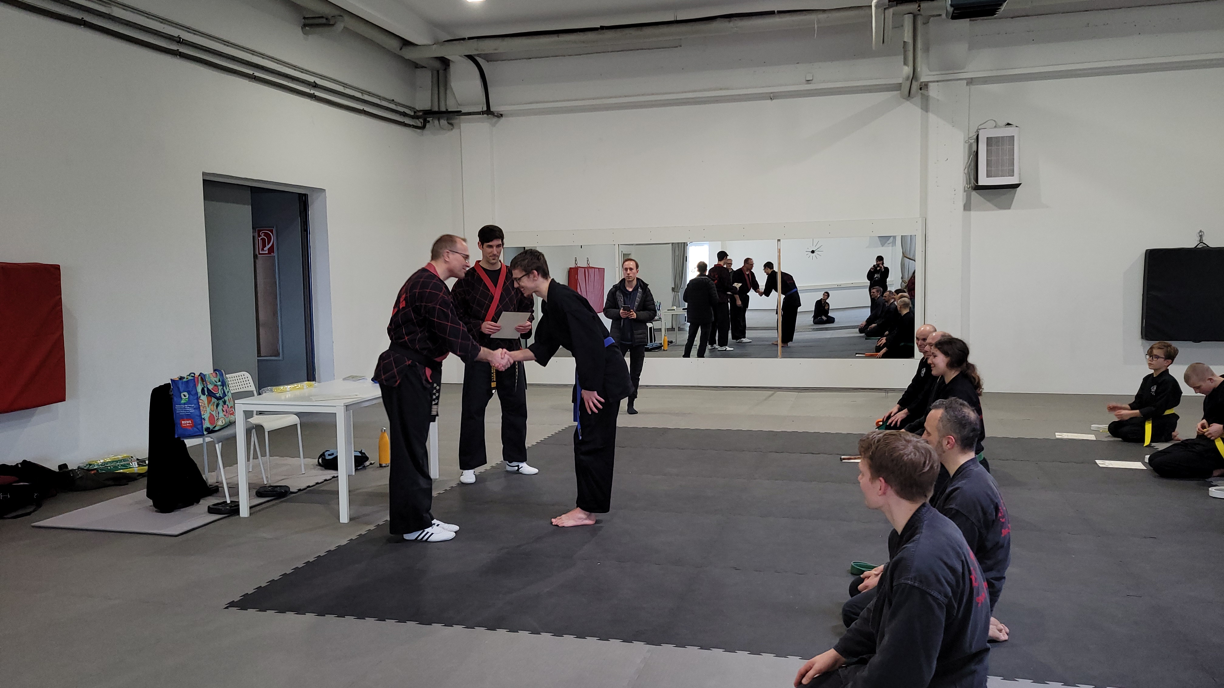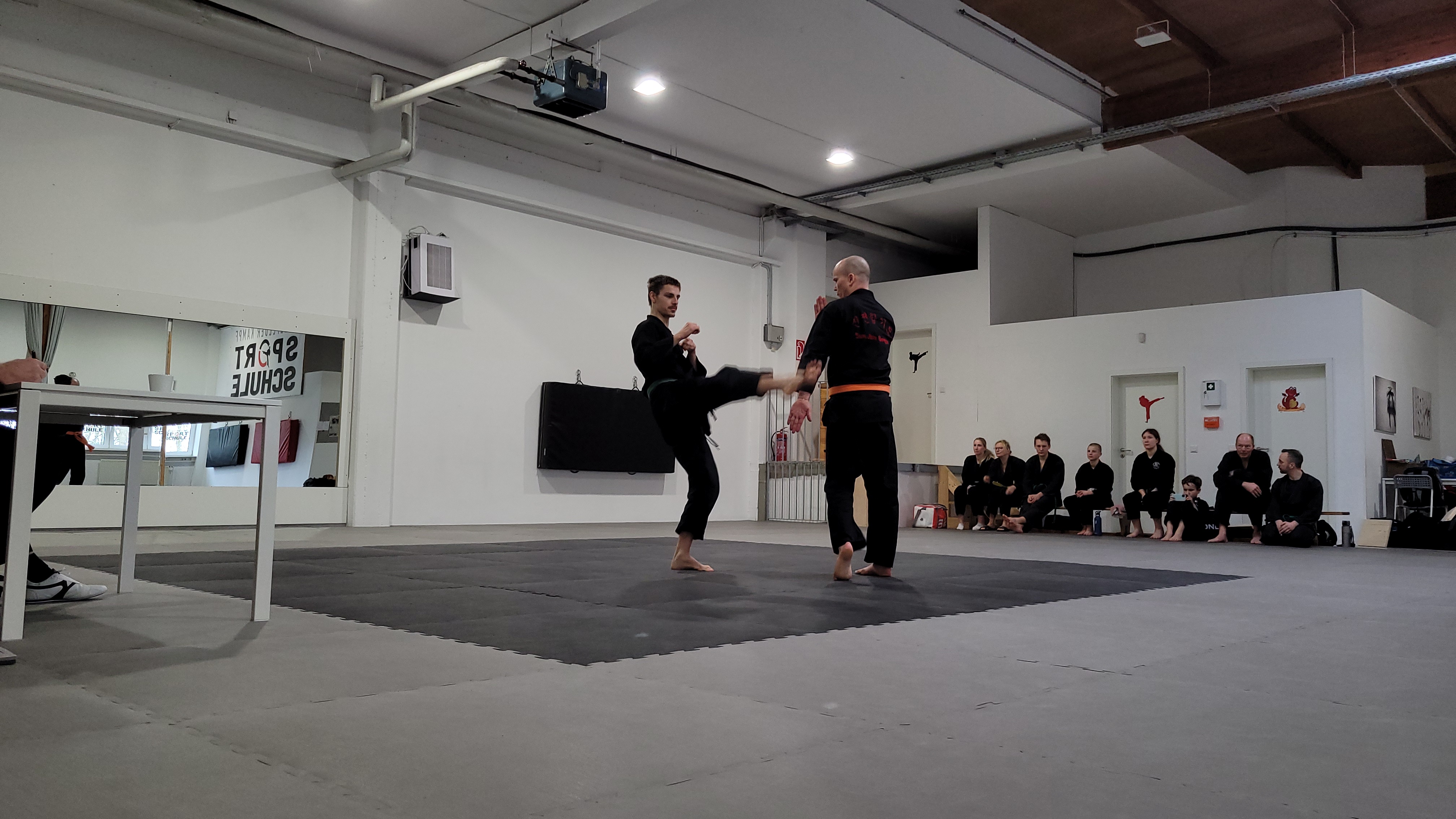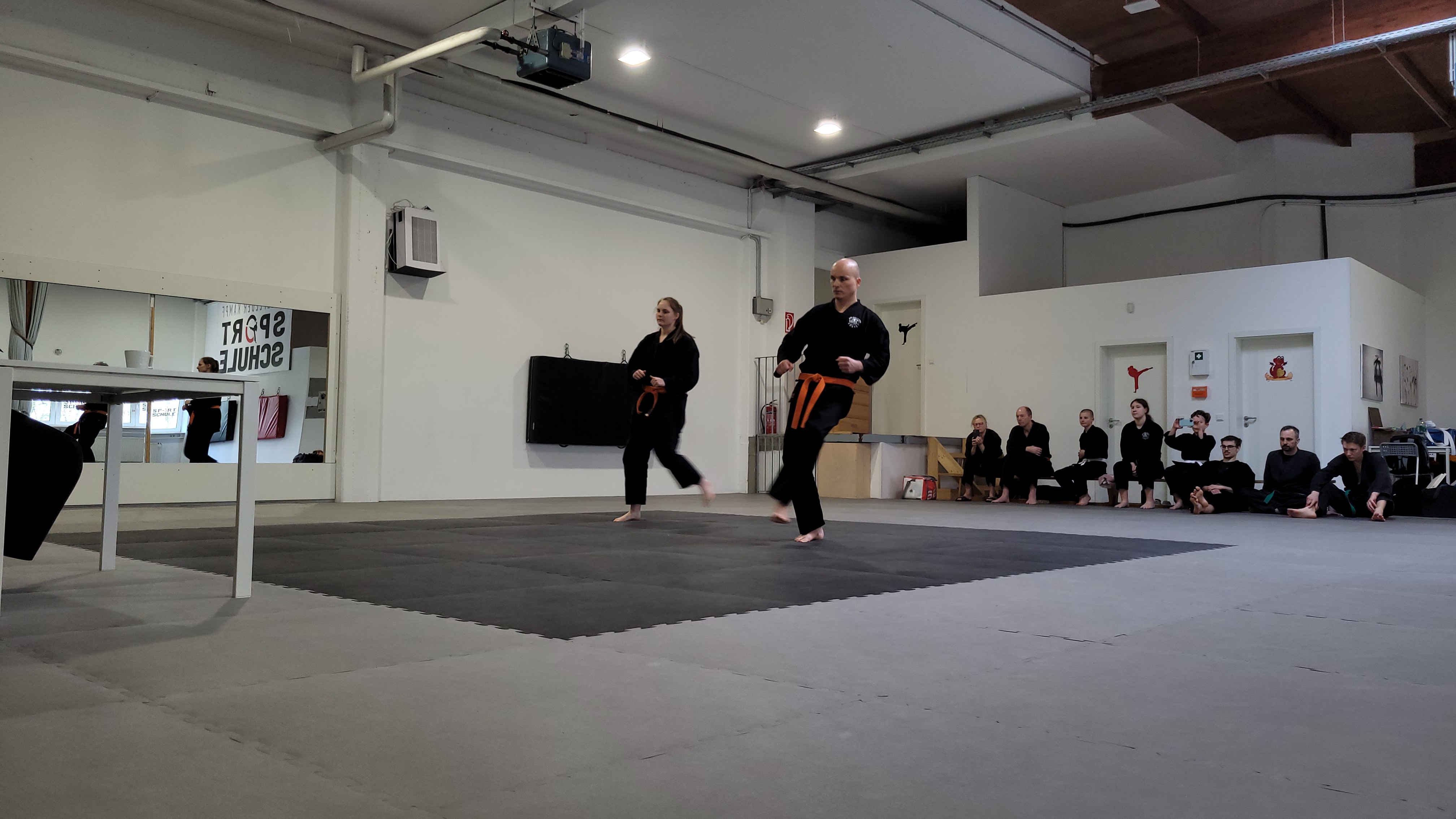 Die Prüflinge zeigten während der Prüfung beeindruckende Ausdauer und Präzision. Besonders hervorzuheben waren die Kämpfe und Bruchtests, die trotz der Länge der Prüfung souverän durchgeführt wurden. Dies unterstreicht das hohe Maß an Training und Vorbereitung, das die Prüflinge in ihre Prüfung investiert haben.