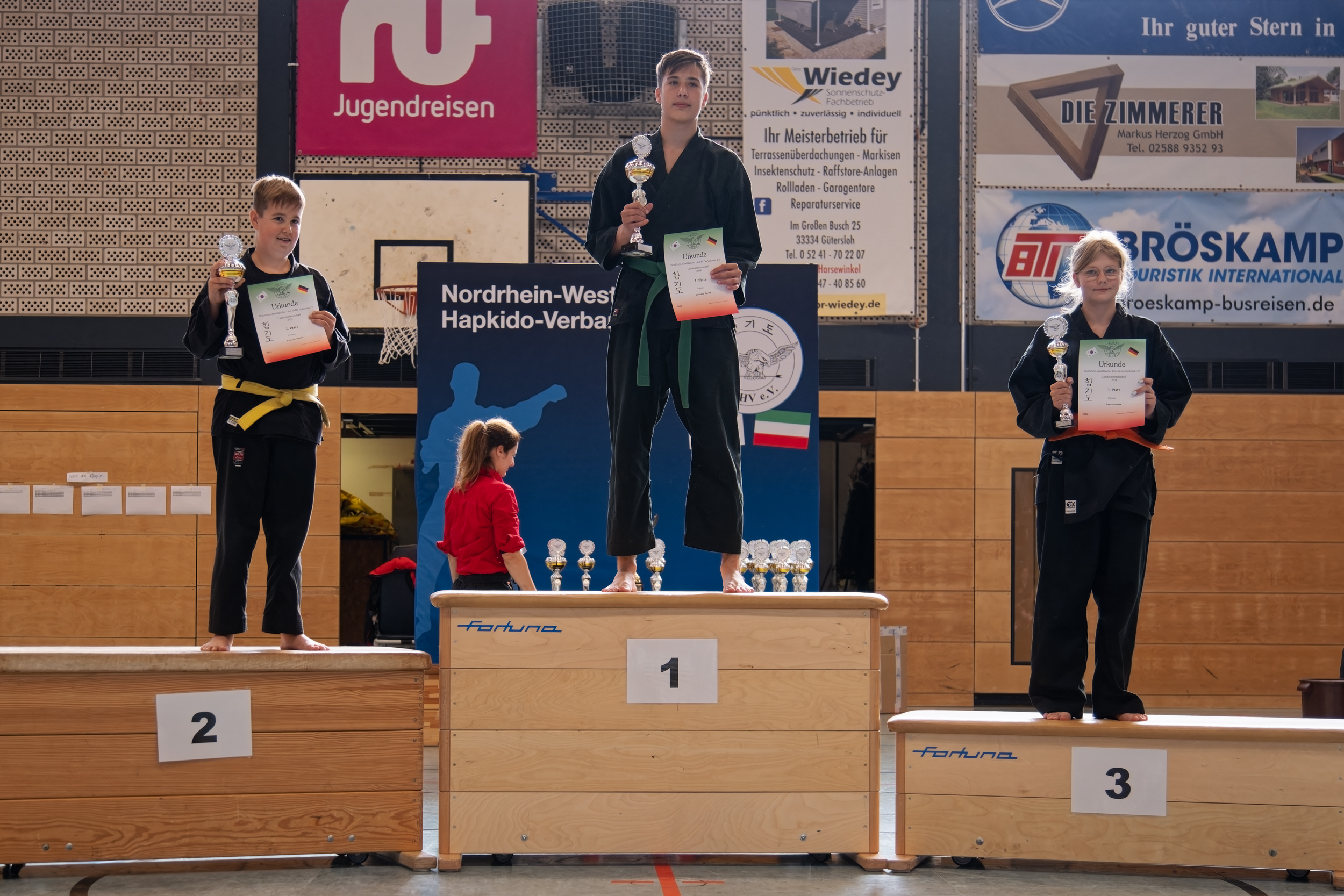 Am 28. September fand die diesjährige Landesmeisterschaft des Nordrhein-Westfälischen Hapkido-Verbands (NWHV) statt. Ausgerichtet vom TSG Harsewinkel trafen sich 86 Teilnehmer:innen um im Wettbewerb um den Landesmeistertitel anzutreten.