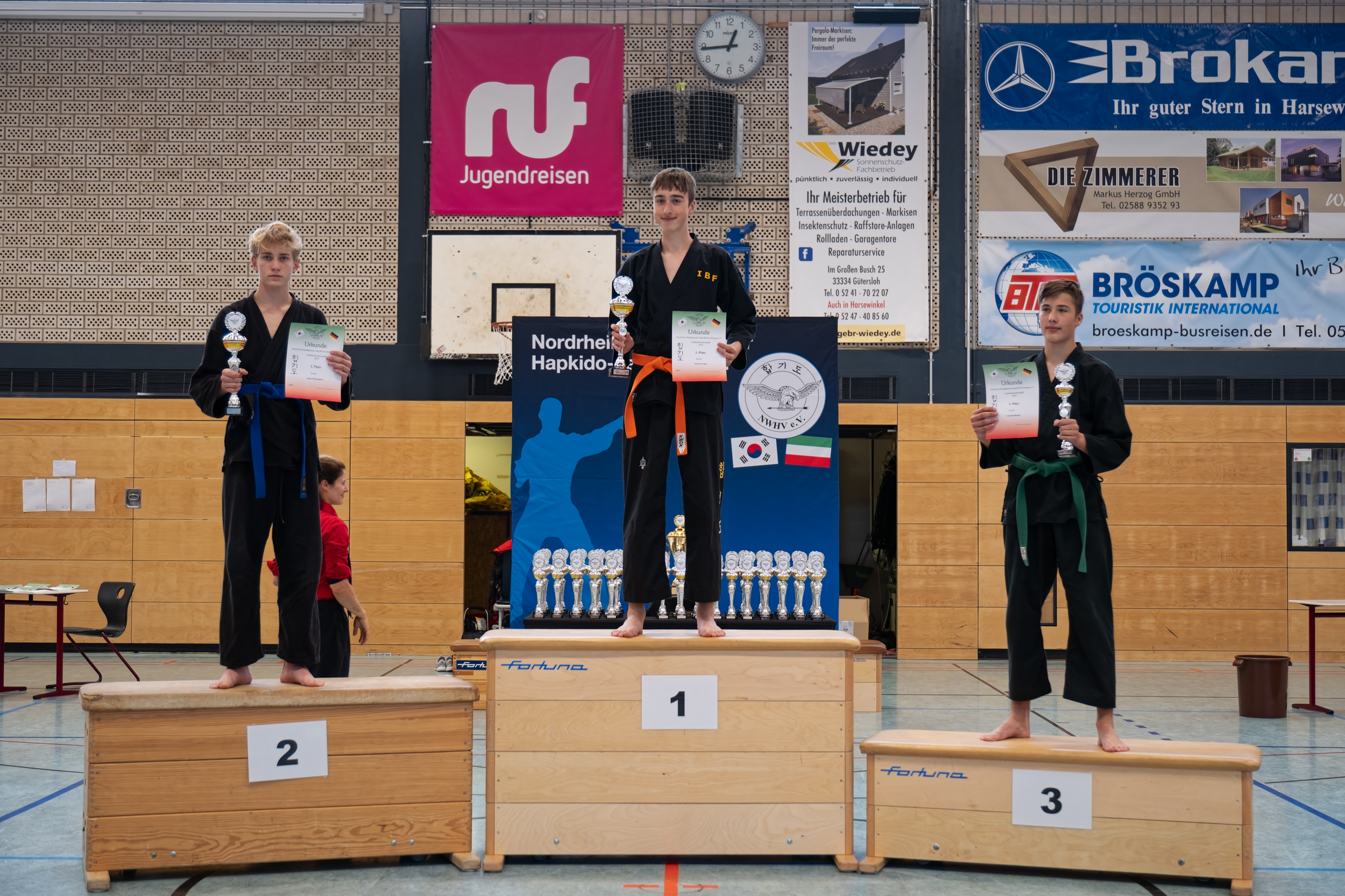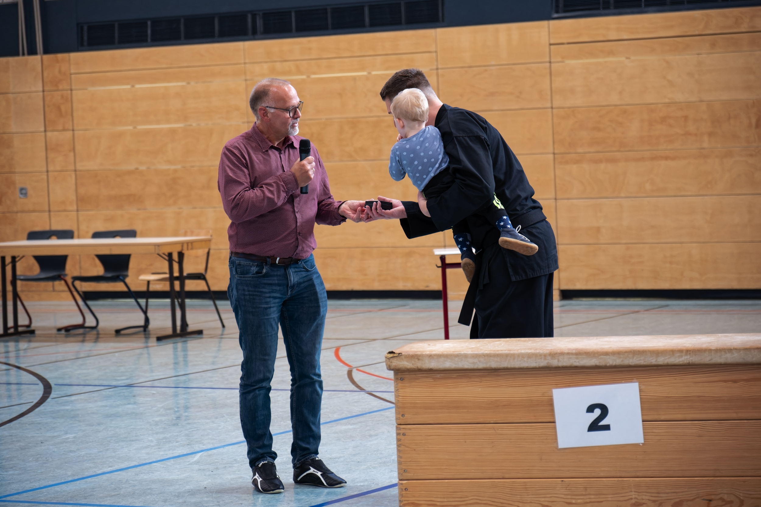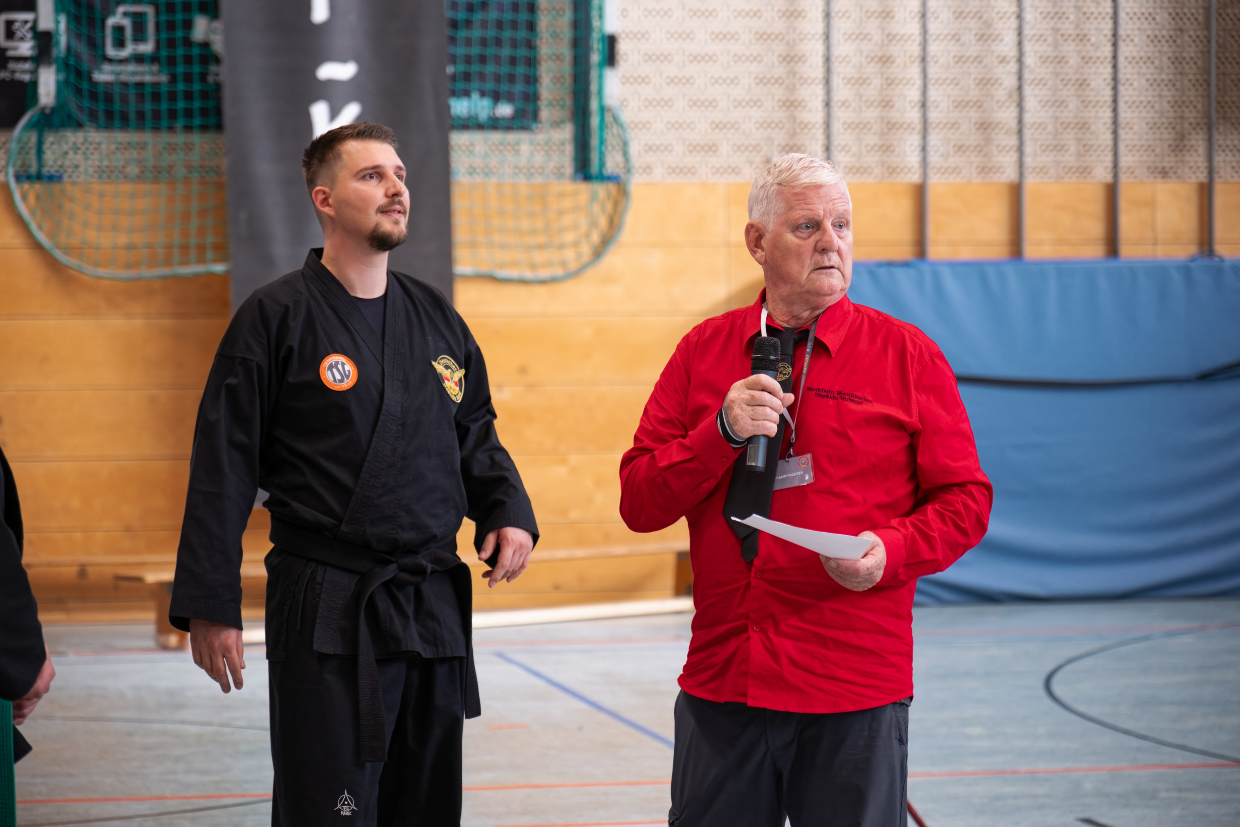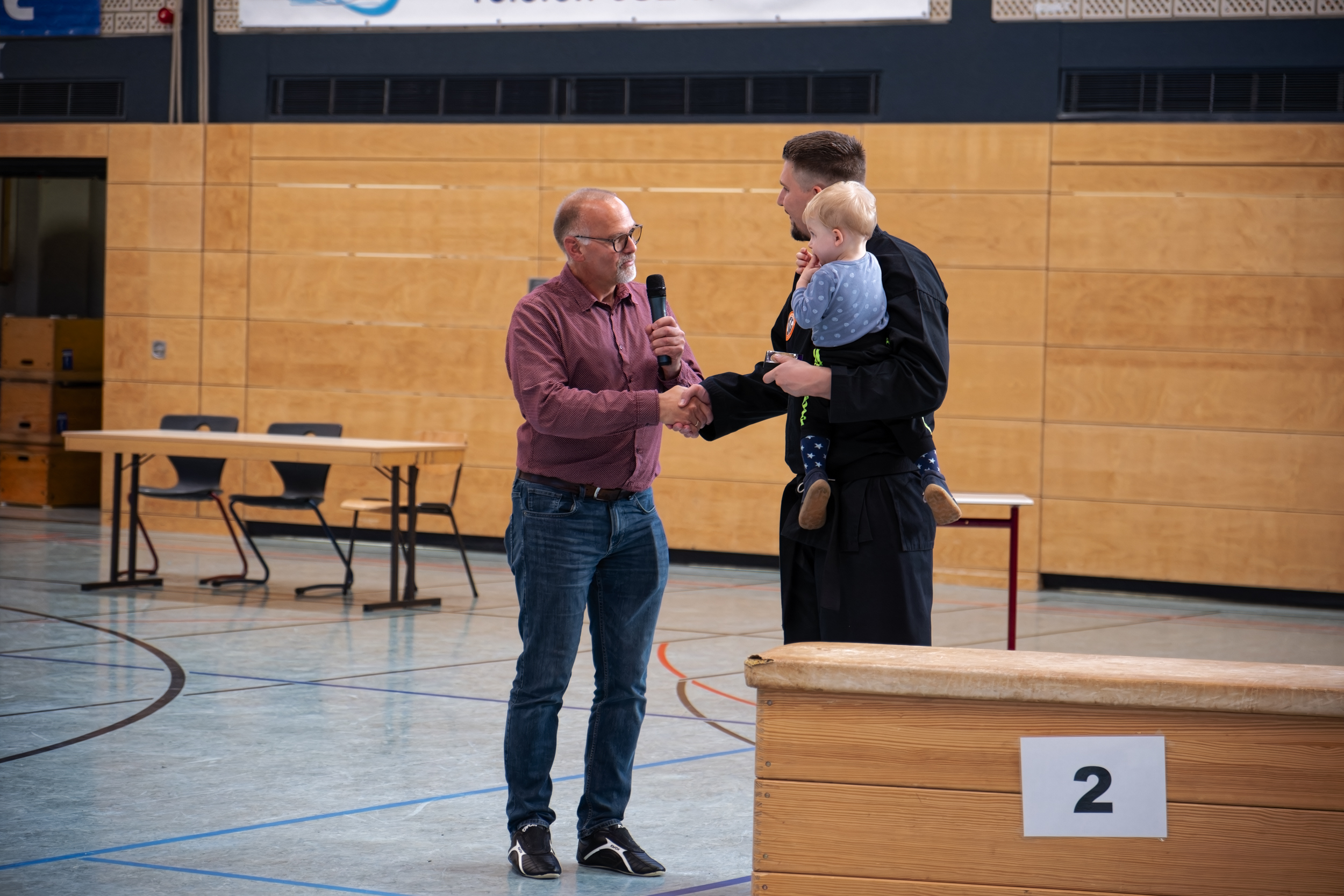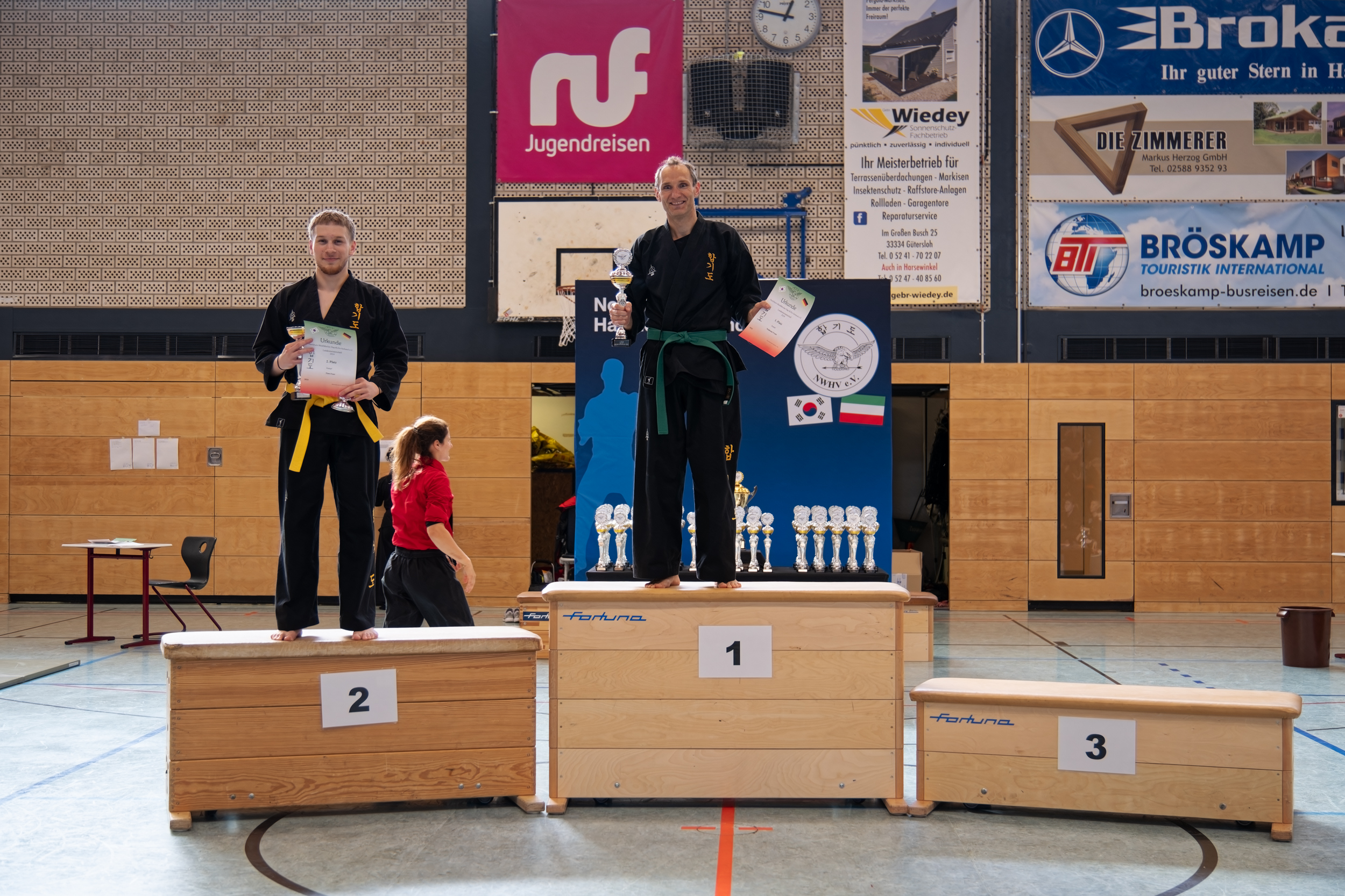 Im Rahmen der abschließenden Siegerehrung erhielt Nils Schürer (I. Dan, Harsewinkel) vom 2. Vorsitzenden des NWHV Michael Richter (I. Dan, Kamen) die bronzene Ehrenmedaille des NWHV für seine sportlichen Leistungen und Erfolge in den letzten Jahren.