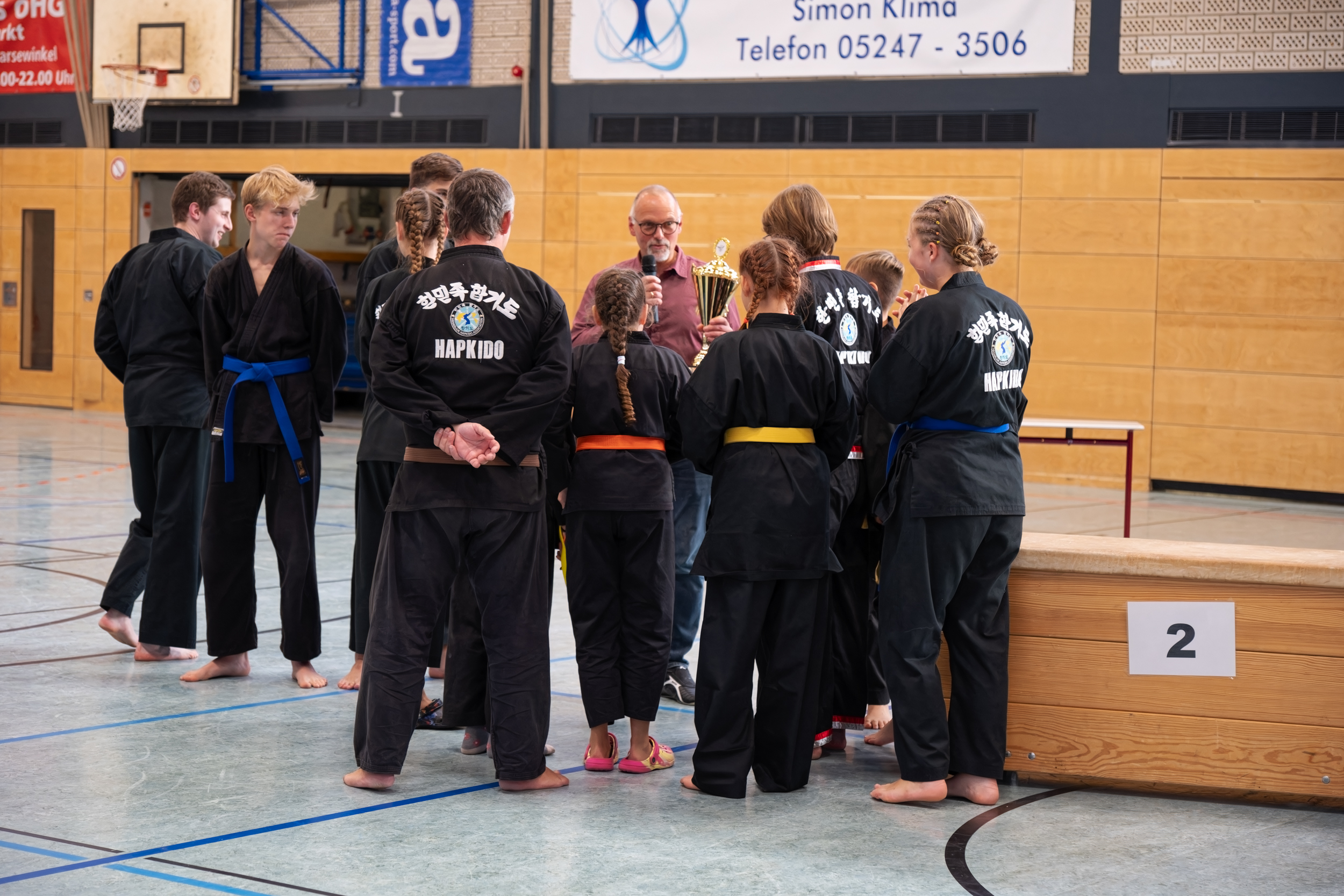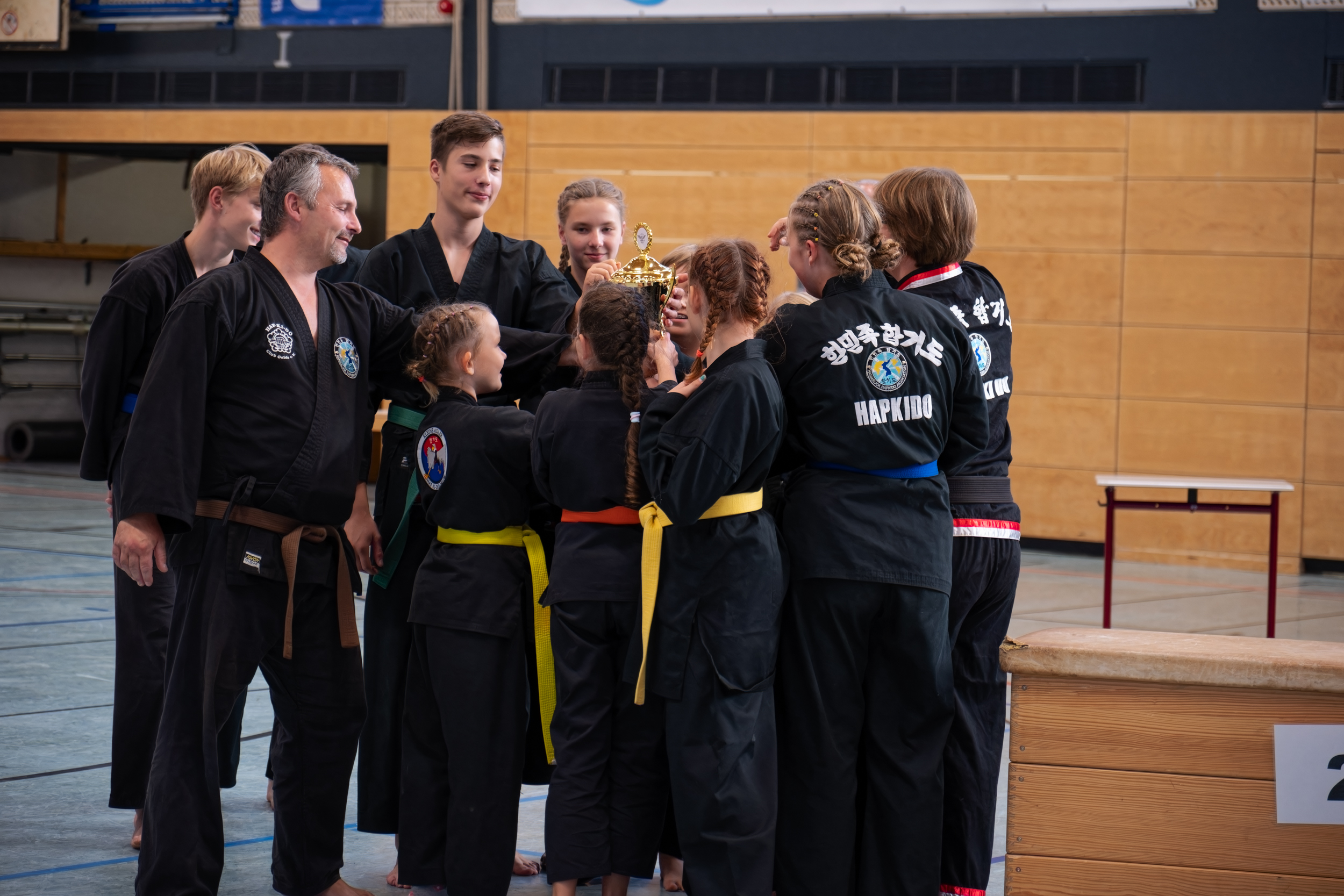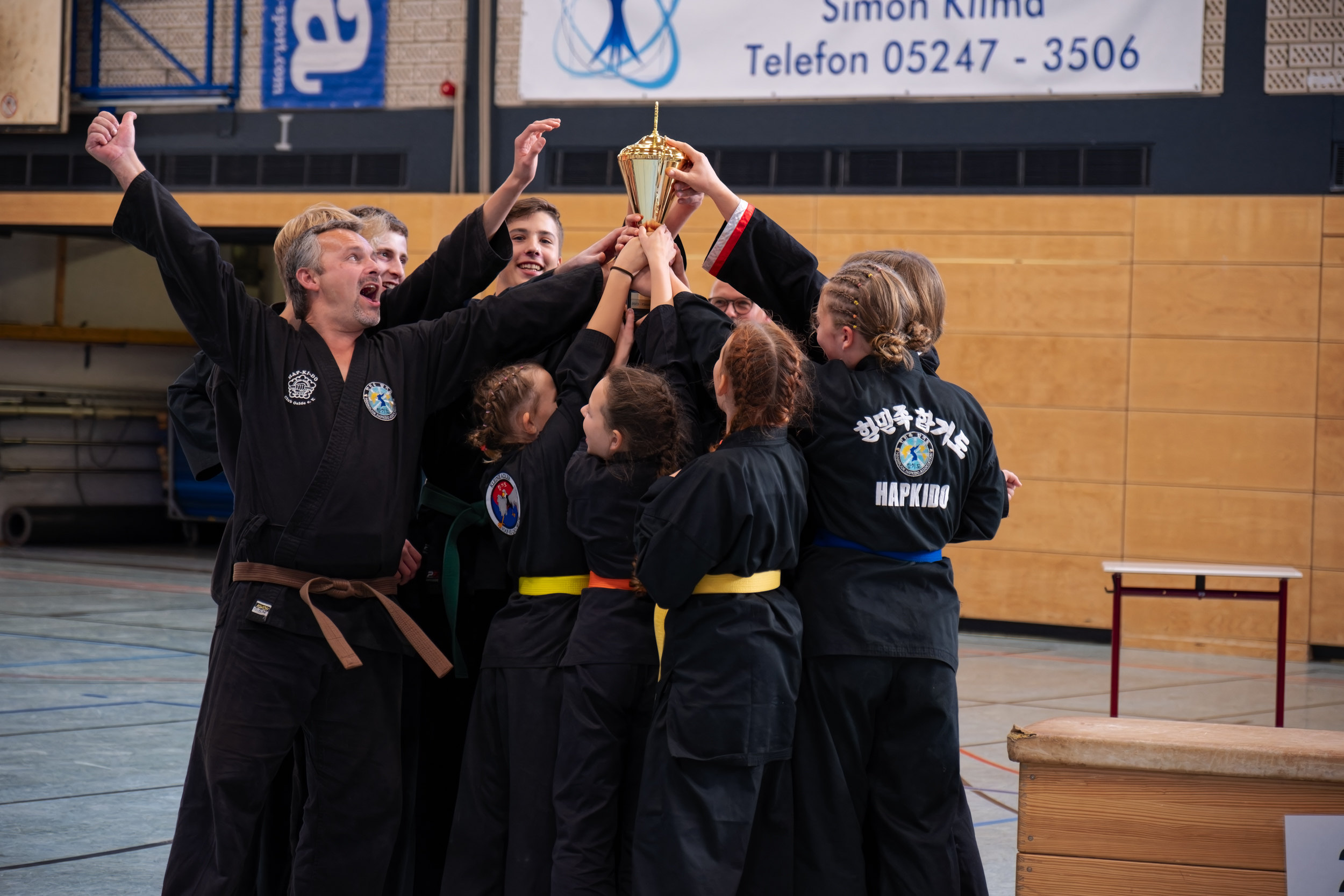 Abschließend wurde der Gesamtsieger der diesjährigen Landesmeisterschaft gekürt: Den Wanderpokal des erfolgreichsten Vereins konnte erneut der Hapkido Club Oelde e.V. nach Hause holen.