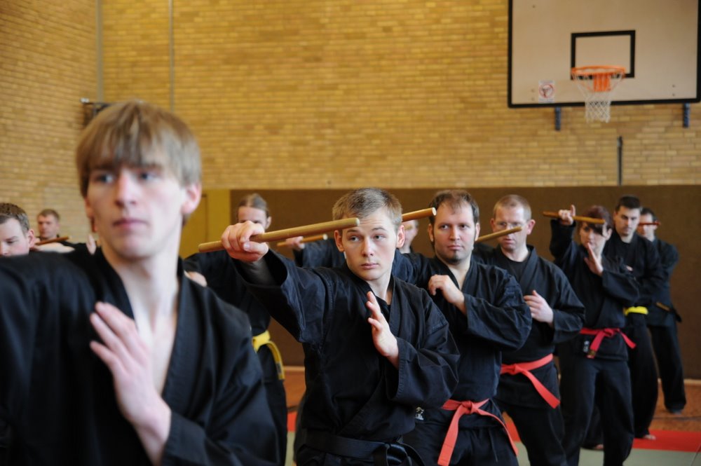 Der Kurzstock (Tan-Pong) ist eine der traditionellen Hilfsmittel, die im Hapkido zur Verstärkung der Selbstverteidigungstechniken genutzt werden (siehe Budoka 10/2010). Der Lehrwart des NWHV, David Brucholder machte diese interessante Waffe zum Thema des ersten Lehrganges 2011 und ließ es sich nicht nehmen, diesen persönlich zu leiten. Knapp 60 Teilnehmer kamen hierzu in Clarholz zusammen, eine außerordentlich hohe Anzahl an Interessenten. Deshalb unterstützten Holger Becker und Detlef Klos den Referenten bei den Korrekturen.