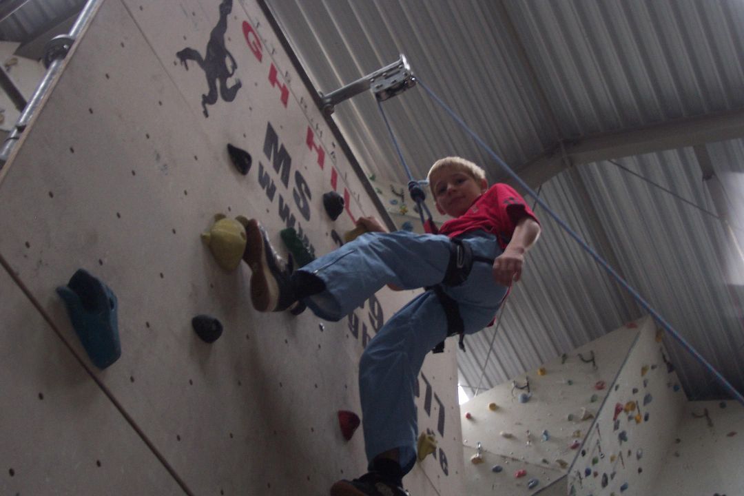 Klettern wie inne Berge! Das versprach die Webseite der High-Hill Kletteranlage in Münster und dieses Versprechen wurde auch locker gehalten. Kletterwände satt, eine riesige Strickleiter und ein Kletterseil das mitten in der Halle von der Decke hing!